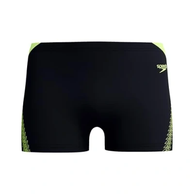 Speedo Men's Hyperboom Splice Aquashort Swimming Trunks Quick Drying Training Fitness Chlorine Resistant Aquashort, Black/Hyper Yellow, 28
