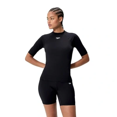 Speedo Women's End+ Short Sleeve Swim Rash Guard Top, Black, XL