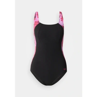 Speedo Women's Print Luna Lustre One Piece Swimsuit, Black, 32