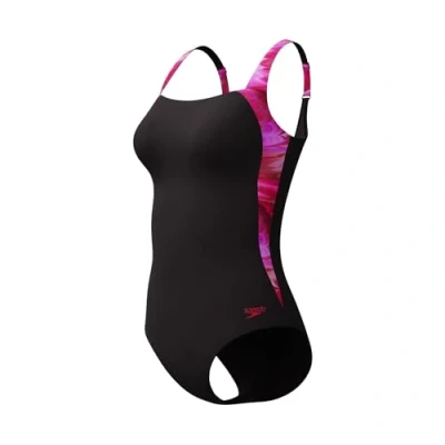 Speedo Women's Print Luna Lustre One Piece Swimsuit, Black, 38