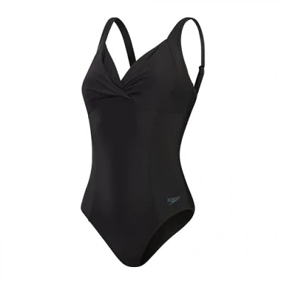 Speedo Women's Shaping Cross Knot 1 Piece Swimsuit Shapewear Beach and Holiday Swimwear, Black, 32/8