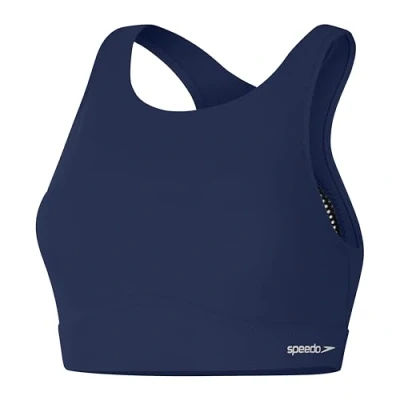 Speedo Women's Solid Highneck Top with Mesh Swim Fitness Stylish Design, Cerulean Blue, XL