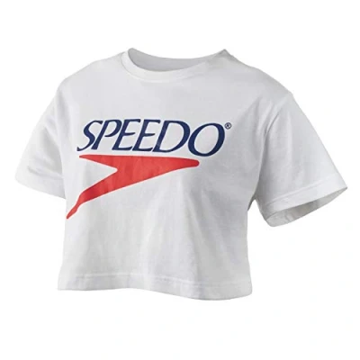 Speedo Women's T Shirt Short Sleeve Crew Neck Vintage Crop, White, Medium
