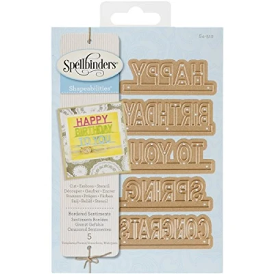 Bordered Sentiments Spellbinder Shapeabilities cut, emboss and stencil with a single die template. Approx Size: 71 x 136mm Set of 5 dies.