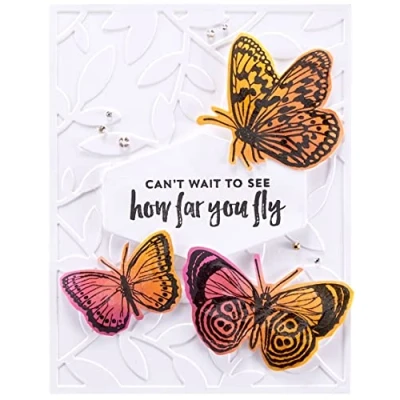 AmazonButterfly 1 2.28 x 1.4,Butterfly 2 1.87 x 1.94, Butterfly 3 1.60 x 1.04, Kind 1.71 x .64,Small Things 2.15 x .67,How Far 2.15 x .62,New Start 2.59 x .40,Dreams 2.67 x .53 Spellbinders Cardmaker II 8, 4 x 6