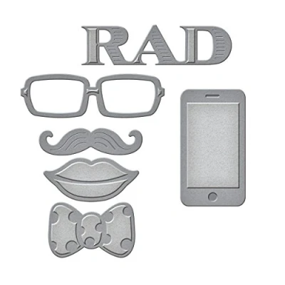 This set is totally Road with its eyewear, mustache, cell phone and other fun accents Phone: 0.90 x 1.65Rad: 2.10 x 0.60sunglasses: 2.00 x 0.60Mustache: 1.45 x 0.40Lips: 1.35 x 0.60Bow tie: 1.20 x 0.80 Use them in your cards, tags, planners, mixed media and more Spellbinders die d-lites cut, emboss and stencil with a single die template International products have separate terms, are sold from abroad and may differ from local products, including fit, age ratings, and language of product, labeling or instructions. Mix-n-match within the collection or use as accents and embellishments Cut, emboss, deboss, stencil Approx sizes: Phone: 0.9x1.65", RAD: 2.1x0.6", Sunglasses: 2x0.6", Mustache: 1.45x0.4", Lips: 1.35x0.6", Bow Tie: 1.2x0.8"