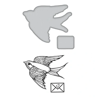 A Little Birdie Told Me Stamp and Die Set Inked Messages Collection by Stephanie Low brings both worlds together of die templates and coordinating stamps to give these images life! These cling foam (EVA) rubber stamps are designed to be used with an acrylic block. This set includes two etched dies with two stamps. Inked Messages Collection by Stephanie Low is about sending heartfelt messages to those we love. Its about keeping in touch and showing love to family and friends with romantic notes, encouraging words or even a sentiment to console. This collection expresses these feelings through Stephanies beautiful designs. Approximate size: Dies: Sparrow: 2.00 x 1.55 in 5.10 x 3.90 cm Letter: 0.75 x 0.60 in 1.90 x 1.50 cm Stamps: Sparrow: 1.85 x 1.40 in 4.70 x 3.60 cm Letter: 0.61 x 0.70 in 1.60 x 1.70 cm SBSDS-144 MPN SDS-144