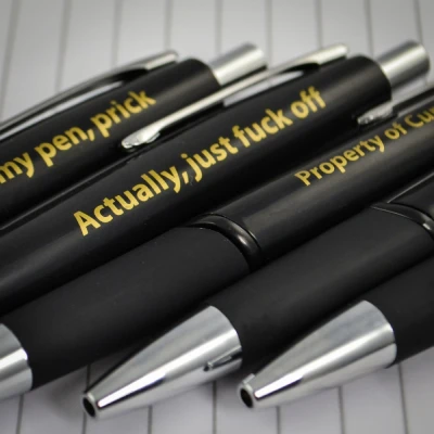 Unleash your inner office rebel with the Offensive Office Stationery set—a hilarious collection of ballpoint pens that speak the unspeakable. Each stylish, high-quality pen comes emblazoned with deeply offensive yet wildly relatable messages, perfect for keeping your desk trespasser-free. With gems like "Actually, just f**k off" and "Property of C***y McF***face", these pens are the ultimate stress relief for the chronically over-it. Whether you're warding off pen thieves or just making a not-so-subtle statement, they’re guaranteed to turn heads (and possibly spark HR meetings). Ideal for anyone who loves dark humour and needs to get through the 9-to-5 grind with a laugh, this set of five pens ensures you’re never left speechless—even if your pens are the ones doing the talking. Grab yours now and let the ink fly!