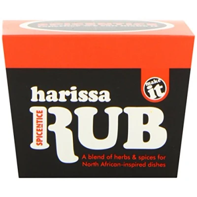 Classic harissa blend has a tasty chilli heat Perfect for rubbing into meat, fish and veggies before roasting Make your own delicious harissa paste by mixing the rub with oil, crushed garlic, tomato puree and lemon juice Free from artificial colours, additives and preservatives It is also free from gluten