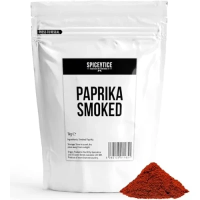 100% PURE SMOKED PAPRIKA SPICE POWDER, FOR AUTHENTIC FLAVORS: Experience the genuine taste of Spicentice premium smoked paprika. crafted from 100% natural ingredients, our smoked paprika is free from additives, gmos, and unnecessary fillers, ensuring a clean, authentic smoky flavour for your dishes. NATURALLY SMOKED FOR DEPTH AND AROMA: OUR smoked paprika is carefully selected for its natural smokiness, providing a deep, rich aroma that enhances every recipe. With no bulking agents and a fully traceable source, we deliver a spice that is pure and potent. RESPONSIBLY BLENDED IN THE UK: Each batch of our smoked paprika is blended with precision in the United Kingdom, in a facility that prides itself on achieving a BRCGS accredited Grade AA rating. This meticulous process ensures the highest quality and safety standards. ECO-CONSCIOUS PACKAGING FOR FRESHNESS: Our smoked paprika is presented in resealable, 100% recyclable food-grade pouches, designed to maintain freshness and minimize environmental impact. This sustainable packaging choice reflects our commitment to the planet. SUITABLE FOR ALL DIETS: Embracing dietary inclusivity, our smoked paprika is gluten-free and accredited for vegan and vegetarian diets. Its purity makes it a versatile addition to any meal, providing rich, smoky flavours without dietary concerns. ALLERGEN-FREE FOR WORRY-FREE COOKING: Manufactured in a nut and sesame-free environment, our smoked paprika offers a safe option for those with common food allergies, ensuring everyone can enjoy its distinctive smoky taste. COMMITTED TO PURITY AND NATURAL FLAVOUR: At Spicentice, we believe in the power of pure, natural spices. Our Premium Smoked Paprika exemplifies this belief, bringing a naturally smoky essence to traditional and contemporary cuisines alike.