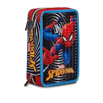 Spider Man The Greatest Hero 3 Zip Pencil Case, Multicoloured, Complete with Pencils, Markers etc.., School & Leisure, Multi Coloured, Taglia Unica,