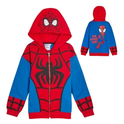 Our premium officially licensed Marvel hoodies include 3 character designs to choose from - Spidey, Miles Morales or Ghost Spider. Spidey and Friends have become the new most popular character favourites. Our designs feature a fully lined dress up hood with eyes and a stitched panel front that is a replica of each character. All completed with a high definition image on the back. A premium special design. A must-have for any Marvel fan. Soft comfortable fabric. Crafted from cotton, this sweatshirt offers a soft, cozy feel that ensures comfort throughout the day, whether at school, play, or relaxing at home. Our design is not just printed, it is seperatly stitched panels to make a premium product. We know this design will soon become your childs favourite hoodie and will be worn again and again, so we have ensured its the best lasting quality. Functional and stylish features. Designed with practicality in mind, this hoodie includes a full zip fastening, and cuffed sleeves for a snug and comfortable fit. Not just a hoodie but also a great zipped jacket. The design is dress up yet has all the practicalties of a zip up hoodie. Perfect gift for Marvel fans. Whether it’s for a birthday, holiday, or just because, this hoodie makes a fantastic gift for young fans of Spidey, Miles Morales, and Ghost Spider, bringing their favorite heroes to life in their wardrobe. Match these hoodies with our other Spidey items on our store. Trainers that light up and backpacks to match.