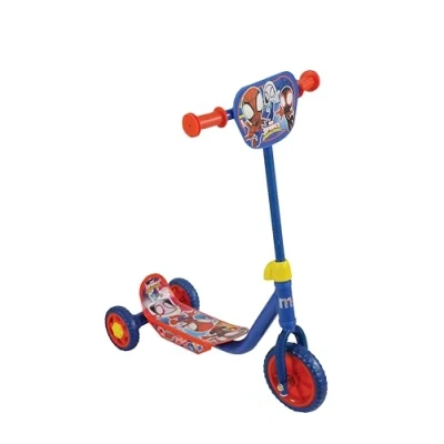 OFFICIALLY LICENSED - Featuring brightly coloured Spidey & Friends images, and a shaped front plaque ROBUST - Durable steel frame and puncture proof EVA tyres ensure confidence and longevity or product THREE WHEEL DESIGN - The 3-wheel scooter design is easy to control and steer, ideal for youngsters. 6" front wheel and 4" rear wheels COMFORT - Handlebars feature soft moulded grips for little hands. The deck is fully printed with smooth sides reducing risk of injury to ankles. Forks and rear wheel nuts are covered for additional safety as well as improved visual design. GREAT FOR YOUNG CHILDREN - encourages the development of balance and coordination with an adjustable handlebar height of 64-74cm