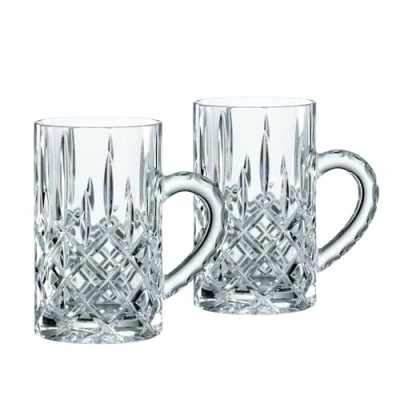 4-piece tea glass set suitable for preparing hot drinks with boiling water – TÜV tested, very handy and durable, ideal for classic tea time Stylish tea enjoyment thanks to glass with a handy handle, sophisticated design for the optimal aroma development of black tea, green tea, herbal tea, fruit tea and more Crystal glass in timeless cut design, diamond-like detailing, unique texture, fine, bead-free edge, brilliant light refraction Made in the EU: dishwasher-safe and increased break resistance thanks to the use of the platinum-glass process, no impairment of the glass quality after numerous washes, processing of the purest ingredients and special raw materials Box contents: 1x Spiegelau & Nachtmann tea glasses set of 2, Noblesse 103767, material: crystal glass, capacity: 250 ml, height: 11.1 cm, largest diameter: 10.1 cm, weight: 680 g