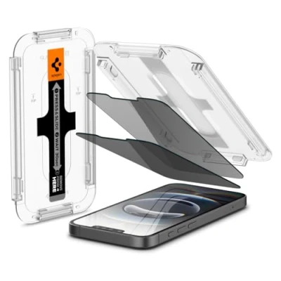 Privacy; Protects your personal data from others on the side, but the screen is clearly visible from the front Note; For perfect installation after placing the template on the device, press firmly from top to bottom on the sticker area 9H hardness; Made of durable 9H tempered glass to protect against everyday scratches Case friendly; Precise cutout provides perfect compatibility with Spigen cases, NOTE; not compatible with Geo Armor 360 Compatibility; Tempered glass screen protector compatible with iPhone 16e, iPhone 14, iPhone 13, iPhone 13 Pro