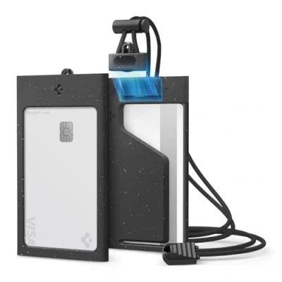 Spigen MagSlide ID Card Holder with Strap Detachable Lanyard Bage (2 Cards) Black
