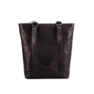 Upright shopping bag with zip Back zip pocket With removable long strap Large logo detail on the front bronco leather