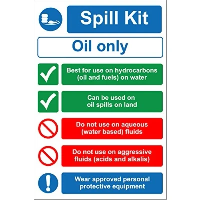Spill Kit Oil Only Sign Self Adhesive Sticker 200mm x 150mm