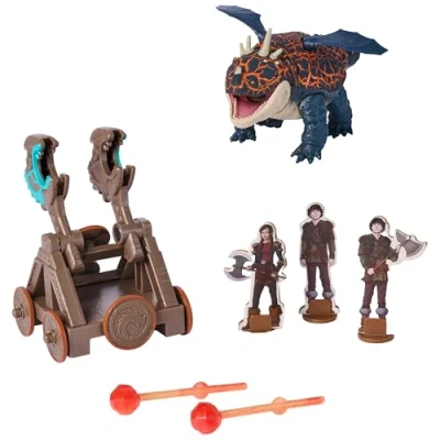 Spin Master Dreamworks Dragons, Trial of Flame, Blazing Battles Catapult Blast Gronckle Playset, Dragon Figure Playset with 3 Cardboard Viking Figures for Ages 4 and up