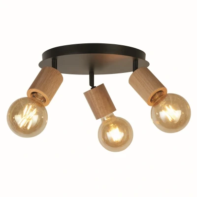 Spinny 3 Light Round Spotlight Wood & Black Metal