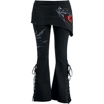 Spiral Bat'S Heart 2In1 Boot Cut Leggings with Micro Slant Skirt M Black
