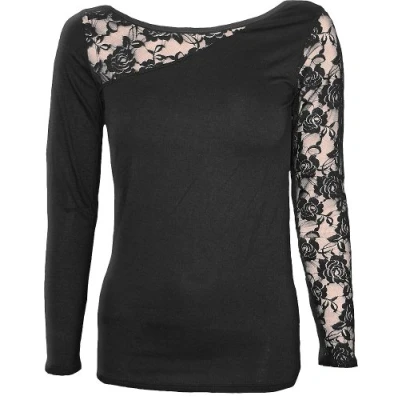 Allure of darkness, inspired by Gothic influence Lace one shoulder top black is made of mainly 95% viscose 5% Elastane, jersey using skin friendly, azo-free, reactive Dyes
