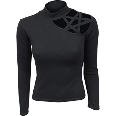 Allure of darkness, inspired by Gothic influence. Where 'Art meets Fashion', Spiral artwork covers a range of themes from tribal, gothic, horror, fantasy and fetish to the more cute and cuddly along with Spiral's own take on various TV and Film characters, all screen printed to last. Just one of the unique from a huge range of Alternative Fashion products from Spiral! Allure of darkness, inspired by Gothic influence. Allure of darkness, inspired by Gothic influence. Allure of darkness, inspired by Gothic influence. Allure of darkness, inspired by Gothic influence. Allure of darkness, inspired by Gothic influence. Pentagram Shoulder Longsleeve Top is made of Top Quality 100% Cotton, Interlock using skin friendly, Azo-free, Reactive dyes. Established since 1990, Spiral has been consistently rolling out cool merchandise for the Gothic and Heavy Metal markets. Spiral is not just a brand …it's an ATTITUDE!