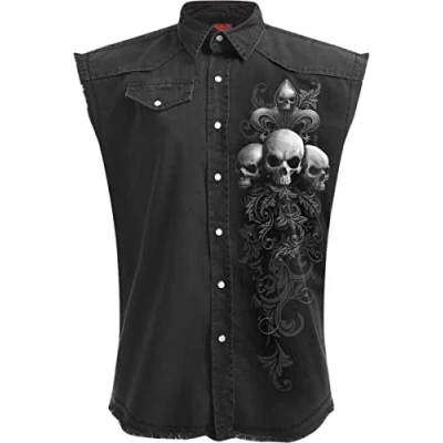 Elegance in the darkest moments shines its black light through the gloom. An organic design portraying death as a beautifully detailed skull and life as the scrolling leaves that surround and reclaim it. Elegance in the darkest moments shines its black light through the gloom. An organic design portraying death as a beautifully detailed skull and life as the scrolling leaves that surround and reclaim it. Elegance in the darkest moments shines its black light through the gloom. An organic design portraying death as a beautifully detailed skull and life as the scrolling leaves that surround and reclaim it. Elegance in the darkest moments shines its black light through the gloom. An organic design portraying death as a beautifully detailed skull and life as the scrolling leaves that surround and reclaim it. Elegance in the darkest moments shines its black light through the gloom. An organic design portraying death as a beautifully detailed skull and life as the scrolling leaves that surround and reclaim it. Sleeveless Stone Washed Worker Black is made of Stone Washed 100% Cotton, Denim using skin friendly, Azo-free, Reactive dyes. Established since 1990, Spiral has been consistently rolling out cool merchandise for the Gothic and Heavy Metal markets. Spiral is not just a brand …it's an ATTITUDE! Where 'Art meets Fashion', Spiral artwork covers a range of themes from tribal, gothic, horror, fantasy and fetish to the more cute and cuddly along with Spiral's own take on various TV and Film characters, all screen printed to last. Just one of the unique 'Workshirts' from a huge range of Alternative Fashion products from Spiral!