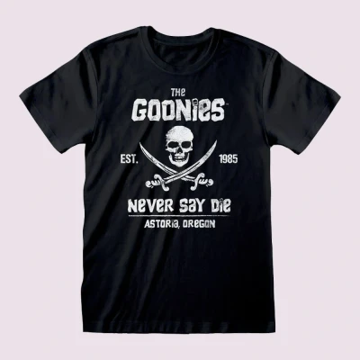 Unleash your inner treasure hunter with The Goonies: Never Say Die T-Shirt! This legendary T-shirt isn’t just a piece of clothing; it’s a badge of honour for all fans of the rich 80s classic, packed with nostalgia and charm. Sporting an iconic design that boldly features the spirit of adventure, this tee is a must for those who believe in never giving up, just like Mikey, Chunk, and the gang. Crafted from 100% cotton, it promises all the comfort you need while you chase down dreams or simply kick back with popcorn during a movie marathon. Its casual vibe is perfect for those relaxed days: whether you're out and about or chilling at home, you’ll be stylish and comfy. Plus, as an officially licenced piece of merchandise, it’s sure to spark conversations and admiration among fellow fans! Available in a range of sizes, this trending T-shirt fits like a dream and pairs perfectly with your favourite jeans or shorts. Don’t miss out on this cool graphic tee, a fantastic addition to any casual wardrobe that pays tribute to the classic adventures of The Goonies. Grab yours now and let the adventures begin!