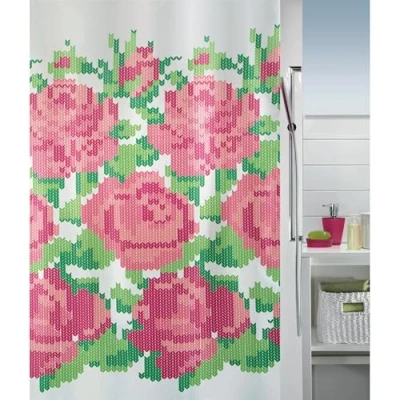 Spirella 10.18483 Textile PENELOPE Rose/Green Shower Curtain 180 x 200 cm Polyester