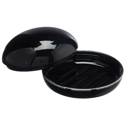 Spirella Bowl Table TOP Accessories Shiny SOAP with Cover Black 1217632, White, Estandar
