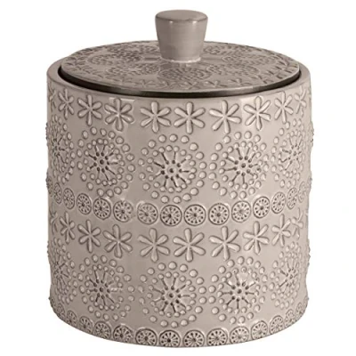 Beautiful storage tin for jewellery and bathroom accessories such as cotton pads or cotton swabs. Store jewelry, scrunchies and clips, cotton pads or cotton buds Made of high-quality porcelain with practical lid Very functional, storage miracle - it can store a variety of utensils. Flexible use. Whether in the bathroom, on the dressing table or on the desk, from make-up utensils, jewellery and bathroom accessories to small sewing thread, craft and hobby tools or even office utensils The small make-up organiser creates order on the dressing table or in the bathroom and saves searching in the cosmetic bag. So you always have lipstick, nail polish, cotton pads, ear sticks, creams etc. at hand. Material: porcelain, dimensions (diameter x height): 9.3 x 11 cm, 420 ml – fits the other bathroom accessories in the Relief series: toilet brush, soap dispenser, soap dish, etc.