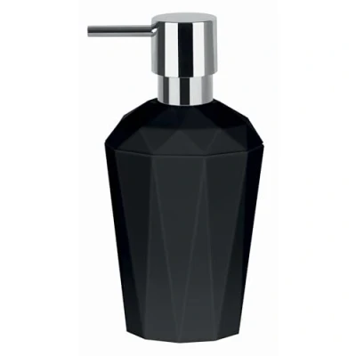 Black pump action soap dispenser Ideal for everyday bathroom use, helps to keep your bathroom surfaces clean and tidy Designed by Spirella from their 'Crystal' collection, with matching accessories available in black or white H: 17cm, W: 8.5cm Made from lightweight durable gloss polystyrene for long lasting use