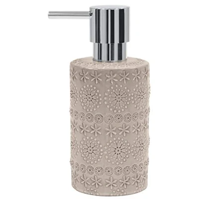 Premium soap dispenser in great design. Thanks to its texture, it feels very high quality and will beautify your bathroom, guest toilet or kitchen in one click. Thanks to the unscrewable head, the soap dispenser can be easily refilled. A print and the optimal amount of soap lands directly on the hand and not on the clothes. Natural design: the soap dispenser is a real eye-catcher and fits well into any bathroom Dimensions (H x W x D): 16.5 x 7 x 7 cm. Capacity: 300 ml Colour: beige. Material: porcelain, Weight: 0.551155655 Pounds, Manufacturer: Spirella