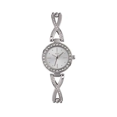 Analogue display Silver Round dial Silver twisted bangle strap Deployment fastening Stone set silver case