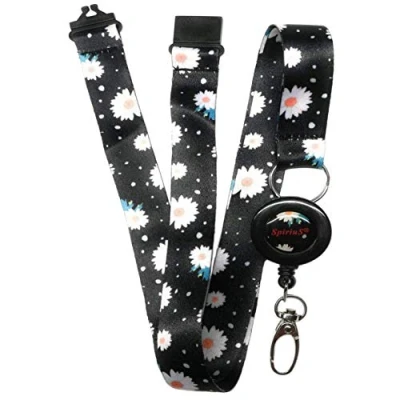 SpiriuS Retractable Lanyard Neck Strap for id Card Badge Holder with Safety Clip Breakaway (Retractable Daisies in Black)