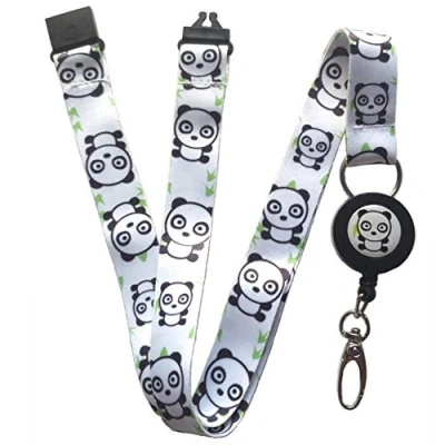 SpiriuS Retractable Lanyard Neck Strap for id Card Badge Holder with Safety Clip Breakaway (Retractable Pandas in White)