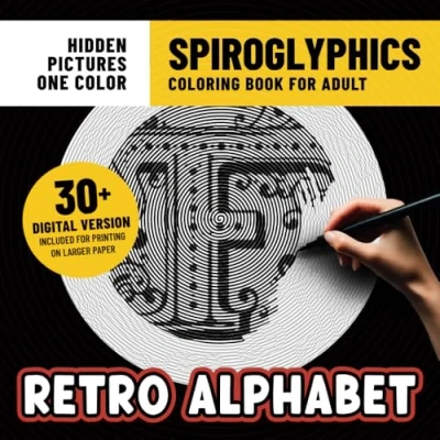Spiroglyphics Coloring Book Retro Alphabet: Decorative Letters Pages With Hidden Pictures for Adults Stress Relief & Relaxation Just One Color