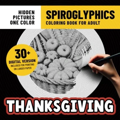 Spiroglyphics Coloring Book Thanksgiving: Cozy Autumn Pages With Hidden Pictures for Adults Stress Relief & Relaxation Just One Color