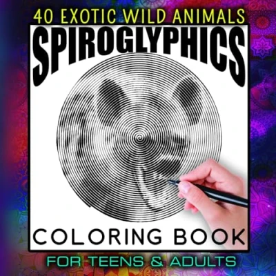 Spiroglyphics One Color 40 Wild Animals: Unique Mindfulness Spiral Coloring Book for Teens & Adults,: Hidden images Relaxation Stress Relief
