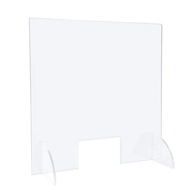 Made in Germany from transparent, original plexiglass. Includes pass-through to allow the protected passage of goods or documents Width: 65.0 cm, height: 90.0 cm, material thickness: 4.0 mm, width: 30.0 x 15.0 cm. Stable, transparent protective disc as a counter top for retail and hotels. Ideal as a crystal clear cutting disc on the desk, e.g. in the office. Easy to clean and ideal for implementing current hygiene regulations.