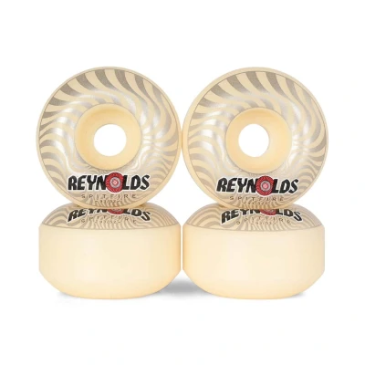 Spitfire Forumla Four Skateboard Wheels 93 Reynolds Classics White 52mm The most controlled and consistent sliding soft wheel. Soft duro combined with high rebound compound absorbs more impact and vibrations. Hold speed through even the roughest terrain with reliable grip when you need it. Set of Four Wheels in Spitfires classic shape Spitfire's unmatched true performance flatspot resistance wheels.