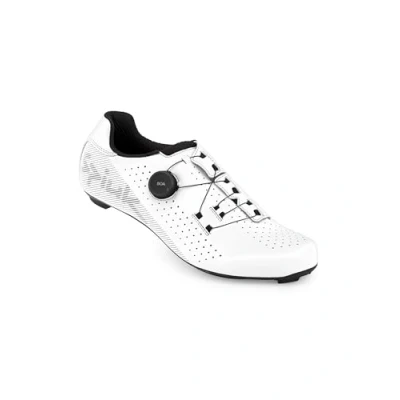 Road cycling shoe with Boa Fit System. Carbon fiber sole for more efficient pedaling, suitable for both road and SPD cleats Boa Fit System with two-way millimetre adjustment system. The unique wiring configuration prevents pressure points and ensures a firm grip. Wraparound vamp without tongue allows for greater ankle tilting.
