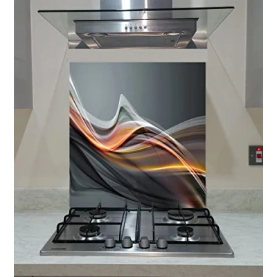 Splash back, Panel Kitchen, Toughened Glass, Abstract Waves on the Gray Background, Any Size, VA Art Glass (wide 60 x height 80 /cm)