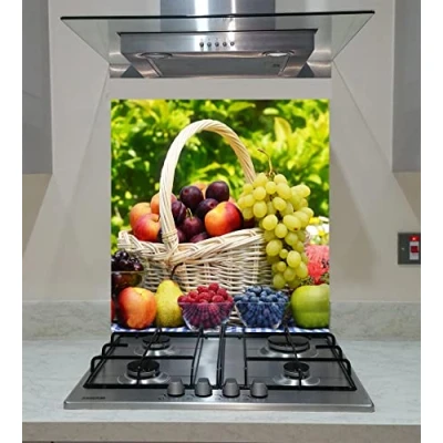 Splash back, Panel Kitchen, Toughened Glass, Basket of Fresh Organic Fruits, Any Size, Va Art Glass (wide 90 x height 60 /cm)