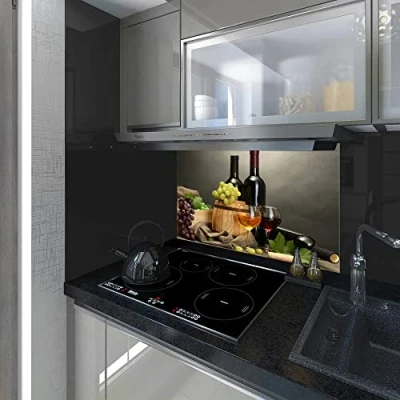 Splash back, Panel Kitchen, Toughened Glass, Bottle of Wine on the Gray Background, Any Size, Va Art Glass (wide 80 x height 60 /cm)