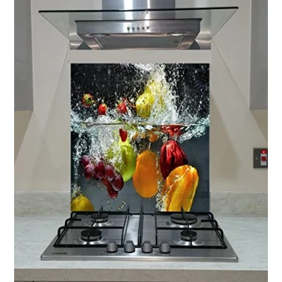 Splash back, Panel Kitchen, Toughened Glass, Fruits Vegetables into Water on the Gray Background, VA Art Glass (wide 60 x height /cm)