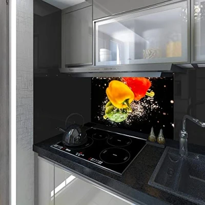 Splash back, Panel Kitchen, Toughened Glass, Peppers in the Water on Black Background, Any Size, Va Art Glass (wide 60 x height 70 / cm)