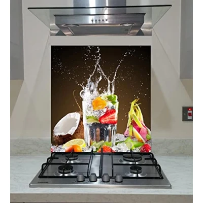 Splash back Tempered Glass Panel Kitchen Drink with Fruit on the Brown Background, Any Size, VA Art (wide 60 x height 80 /cm)