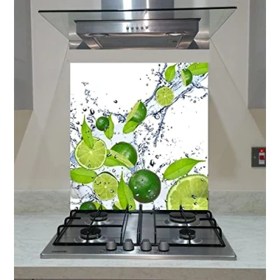 Splash back Tempered Glass Panel Kitchen Limes in the Water on White Background, Any Size, Va Art (wide 70 x height /cm)